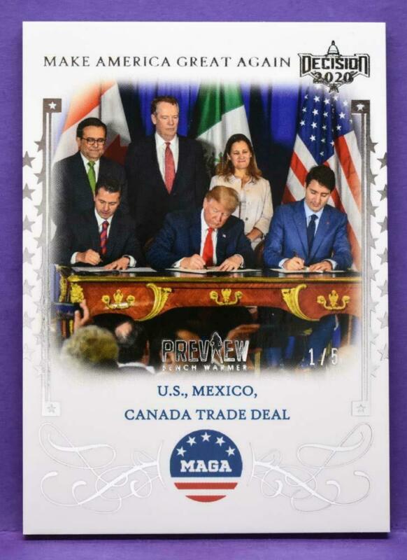 Title (ebay affiliate link): RARE Decision 2020 Preview MAGA #M20 U.S., Mexico, Canada Trade Deal #''d 1/5