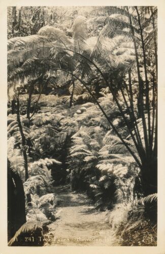 1930s RPPC Hawaii Tree Fern Road, Hilo, Kilauea Volcano