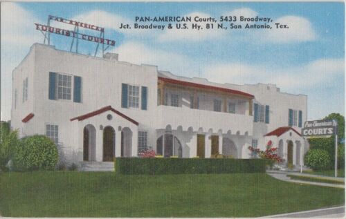 Title (ebay affiliate link): SAN ANTONIO TX - PAN AMERICAN COURTS (MOTEL) 1940s - 5433 Broadway - DEMOLISHED