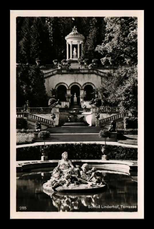Title (ebay affiliate link): DR JIM STAMPS TERRACE LINDERHOF CASTLE GERMANY RPPC REAL PHOTO CUPPED POSTCARD