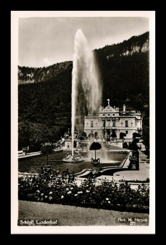 Title (ebay affiliate link): DR JIM STAMPS FOUNTAIN LINDERHOF CASTLE GERMANY RPPC REAL PHOTO CUPPED POSTCARD