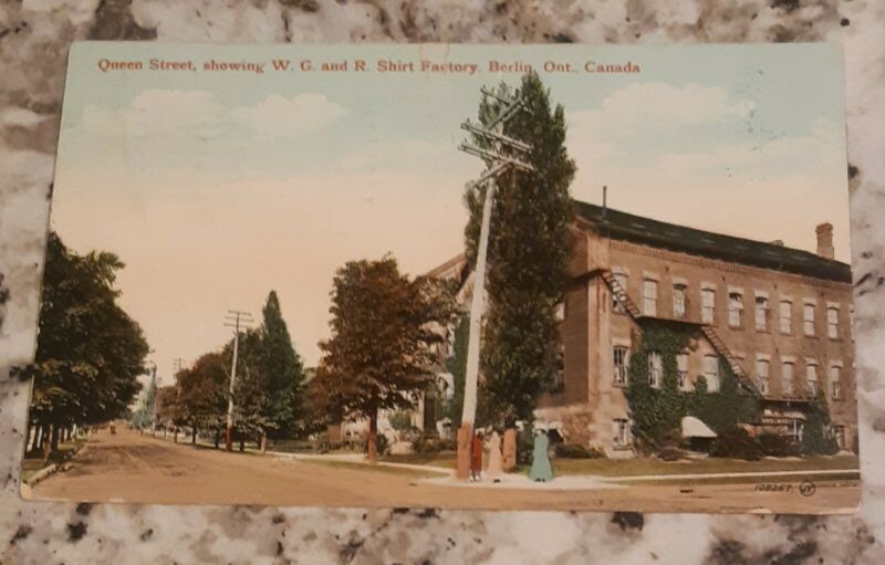 Title (ebay affiliate link): 1913 Queen St. W.G. & R. Shirt Factory, Berlin, Ontario. Canada Used Postcard