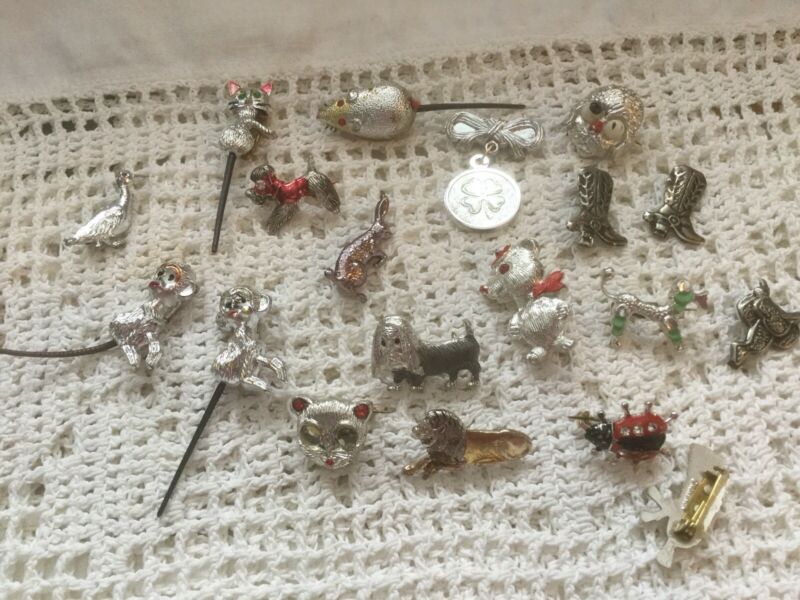 Vintage Gumball Machine Prizes , 19 Plastic & Metal Pins , Pin Lot Animals +