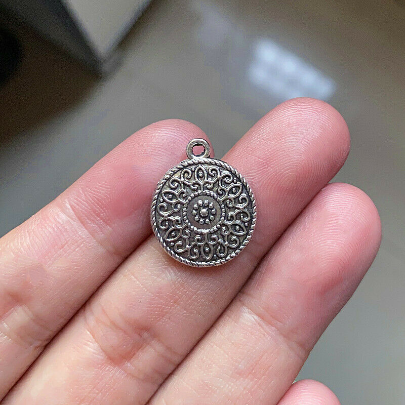 10pcs 17x20mm Small Round Coin Charms Antique Silver tone Jewelry Making new