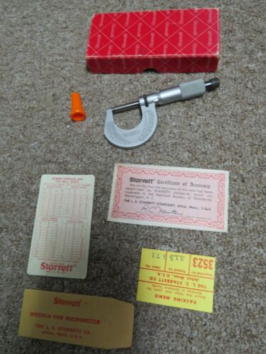Starrett 1 inch 1000ths Micrometer 230RL In box & wrench Accuracy Certificate