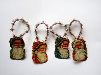 Title (ebay affiliate link): 4 Antique Santa Die Cut Feather Tree Christmas Ornament