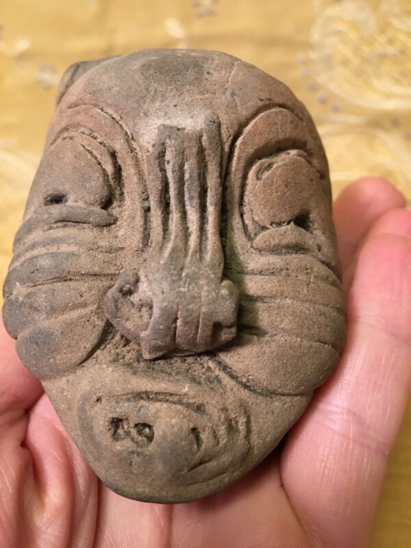 Title (ebay affiliate link): Early Pre-Columbian Terracotta Pottery Head Fragment Ritual Artifact Ancient #1