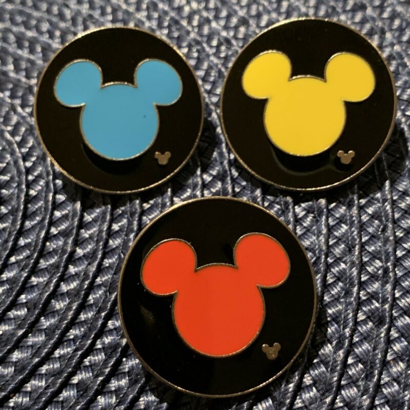 Title (ebay affiliate link): Disney Trading 3 Pins Lot, Set of Hidden Mickey Iconic Ears Red Blue Yellow USED