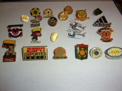 Lot of 22 collectible pins soccer, travel, advertising, coca cola