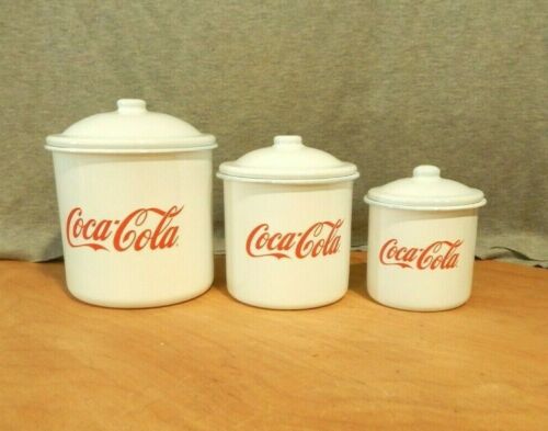 Title (ebay affiliate link): 3 Pc "COCA-COLA" Enamelware CANISTER SET Fishtail w Stars Logo Exc B