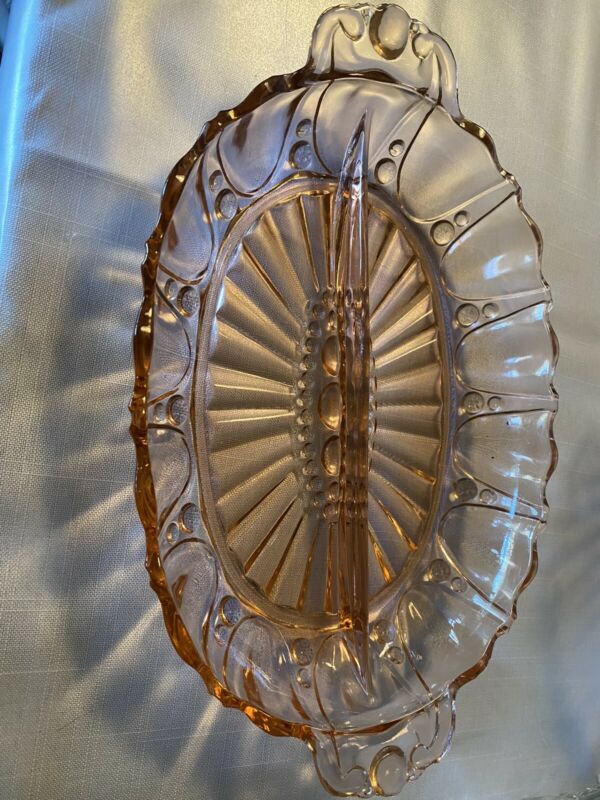Anchor Hocking Oval Divided Pink Depression Glass Oyster And Pearl Relish Dish