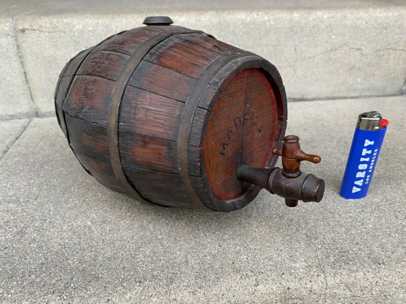 Title (ebay affiliate link): Miniature Folk Art Oak Staved Maderia Wine Barrel, Early 20th Century AAFA 9"