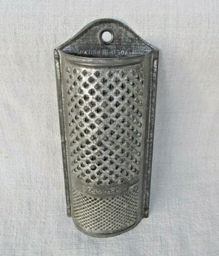 Title (ebay affiliate link): Nice Antique ACME GRATER Punched Tin Half Moon Primitive G.Britain Shredder