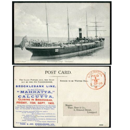 "MAHRATTA" Brocklebank Line (Boer War transport) Co.business PC. FGO Stuart 1903