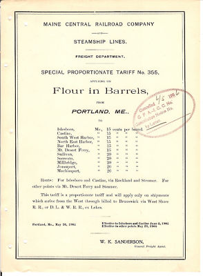 1905 Maine Central Rates Bar Harbor Islesboro Castine