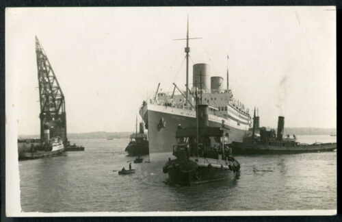 Title (ebay affiliate link): "ASTURIAS" Royal Mail Lines. Docking at Southampton with Tugs. Candid c1935 RP