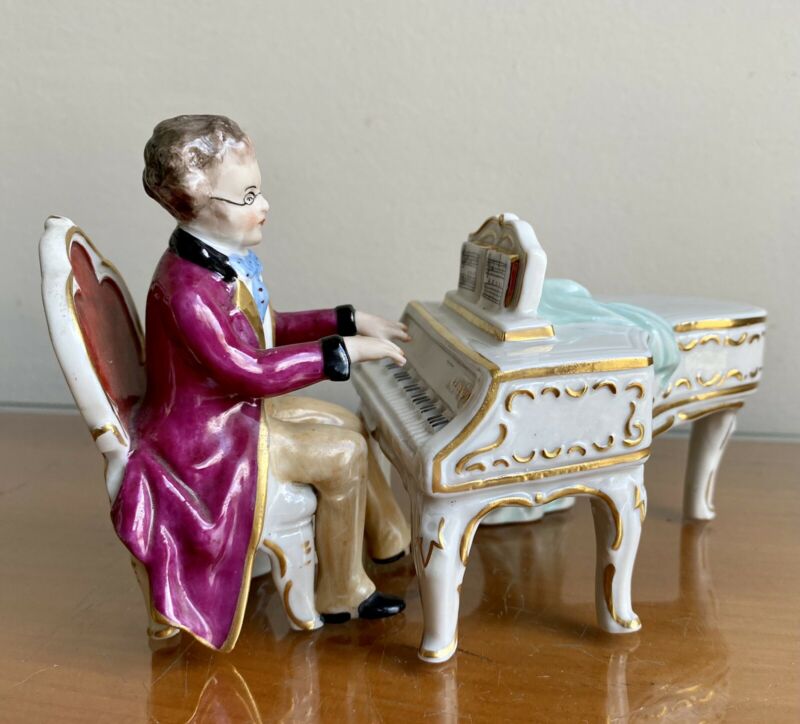 Title (ebay affiliate link): 2 Pcs. Dresden Ackerman and Fritze Porcelain Man with Piano~N/Crown Mark~MINTY!