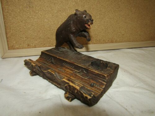 Vintage Hand Carved Black Forest Bear Inkwell & Pen Rest. #751