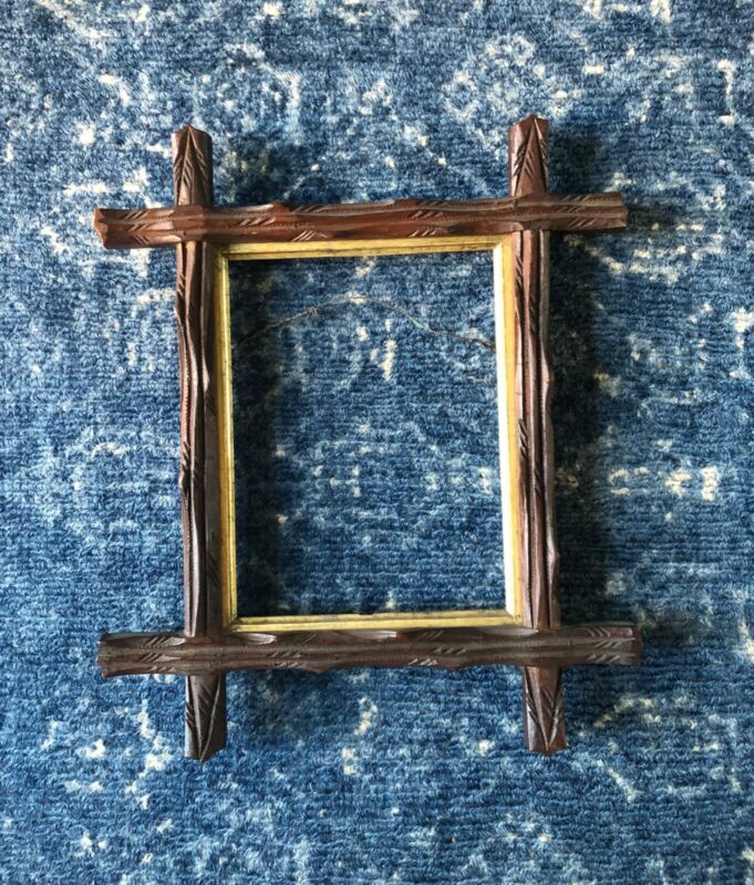 Antique Adirondack Tramp Art Wood Picture Frame Folk Art Hand Carved