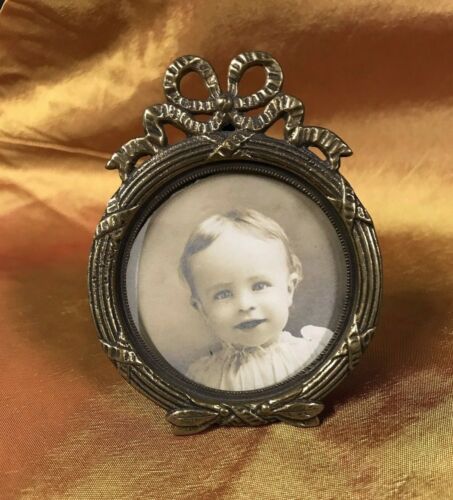 Antique Round Bronze or Brass Picture Photo Frame