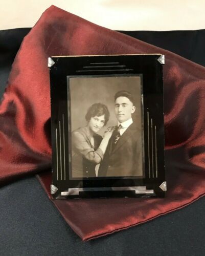 Vintage Art Deco Black Glass Picture Photo Frame