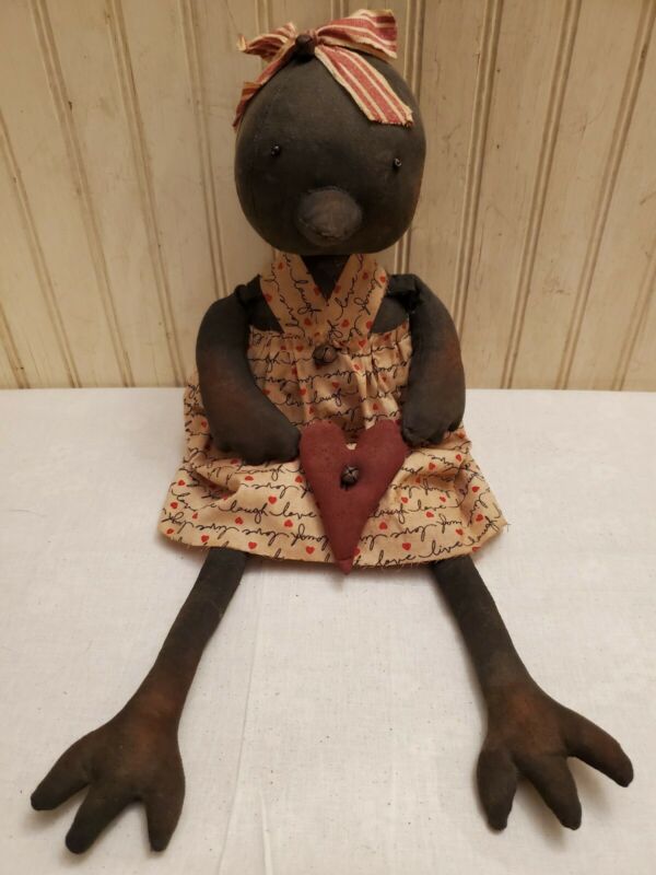 Title (ebay affiliate link): Primitive Grungy Sweet Black Crow Girl Doll & Her Valentine Heart