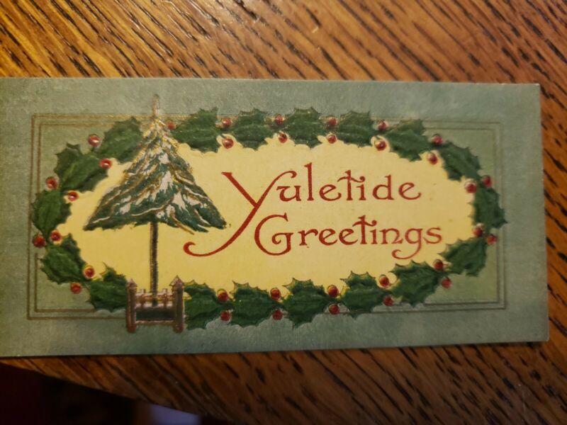 Title (ebay affiliate link): 11 1900s Embossed Christmas Gift Tags...Yuletide Greetings NOS, Rare Antique