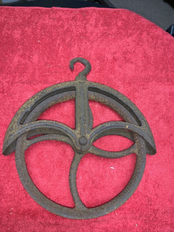 Title (ebay affiliate link): Vintage Cast Iron Pulley Antique Old Farm Wheel Barn Steampunk