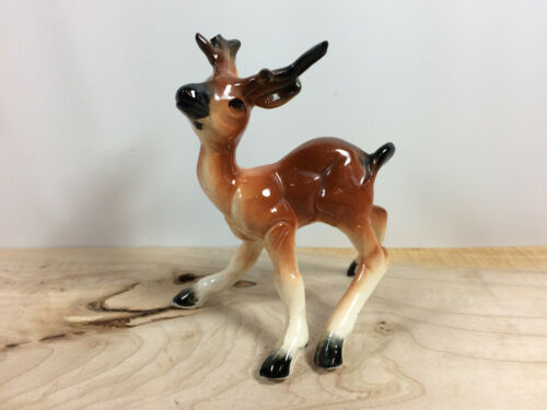 VINTAGE ANTIQUE CERAMIC DEER BUCK, LEGS ASKEW, GERMANY? BROWN BLACK, CHIPPED