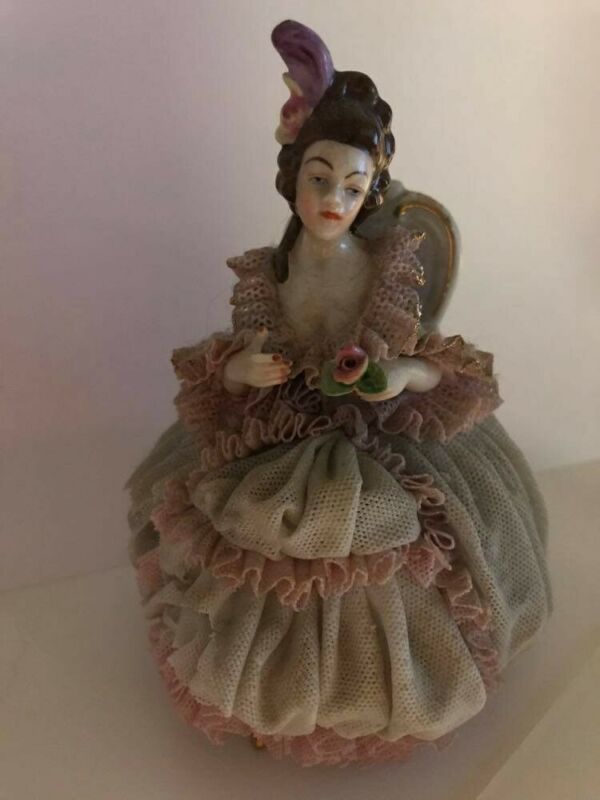 Title (ebay affiliate link): Vintage Victorian Lady ALKA Dresden Lace Porcelain Charlotte Figurine Germany
