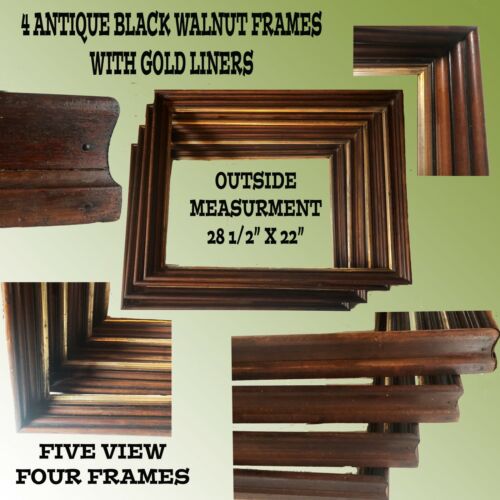 4 MATCHING ANTIQUE BLACK WALNUT 28 1/2" X 22" PICTURE FRAMES WITH GOLD LINERS