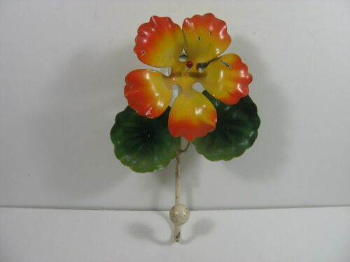 Title (ebay affiliate link): Vtg Italy Tole Metal Enamel Flower Power Wall Hook Yellow Orange Shabby Cottage