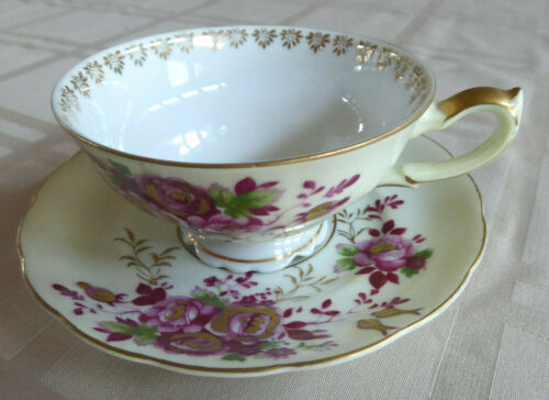VINTAGE YADA CHINA TEACUP & SAUCER - CREAM COLOR WITH FLOWERS & GOLD HIGHLIGHTS