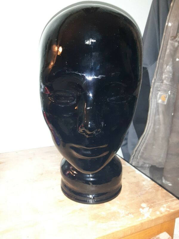 Title (ebay affiliate link): Old Vintage Black Glass Head Mannequin Bust Wig Hat Stand Counter Display