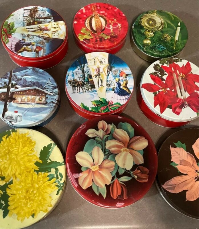 Vtg Fruitcake Tins Collin Street Bakery Swiss Colony Mrs. Steven''s Steven Candy