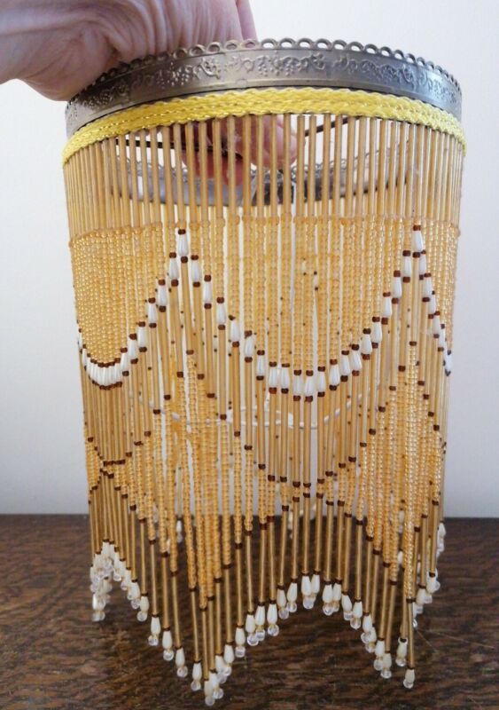 Title (ebay affiliate link): Vintage Art Deco Style Beaded Amber Lamp Shade 18cm diam, 26cm drop