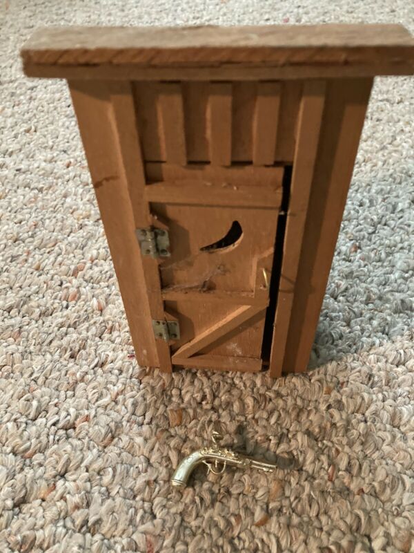 Title (ebay affiliate link): OUT HOUSE TOILET SHED VINTAGE DOLL HOUSE WOOD FURNITURE w/ accessories!!!