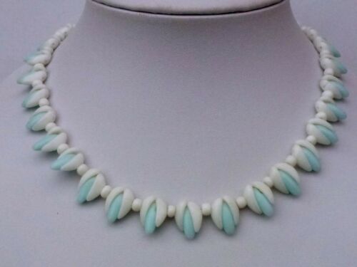 AN ART DECO PALE BLUE & WHITE MILK GLASS BEAD NECKLACE