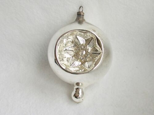 Title (ebay affiliate link): Antique SILVER DOUBLE FLOWER INDENT Blown Glass Christmas ORNAMENT w FINIAL
