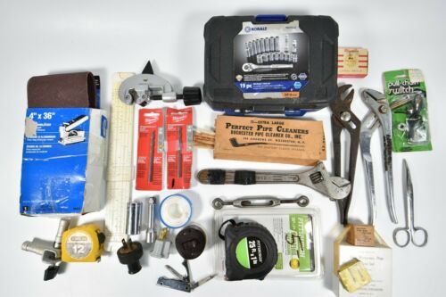 Title (ebay affiliate link): Junk Drawer Lot Tools Kobalt Sockets Channel Lock Pipe Cutter Drill Bits Rule