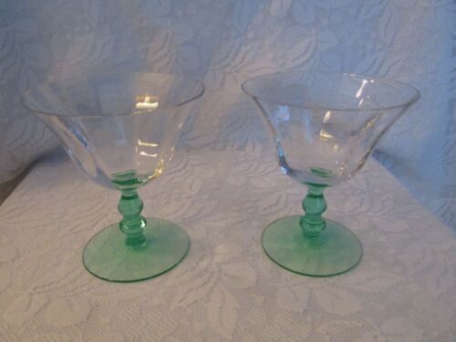 Two Vintage Elegant Green Depression Glass Sherbet Dishes Champagne Glasses