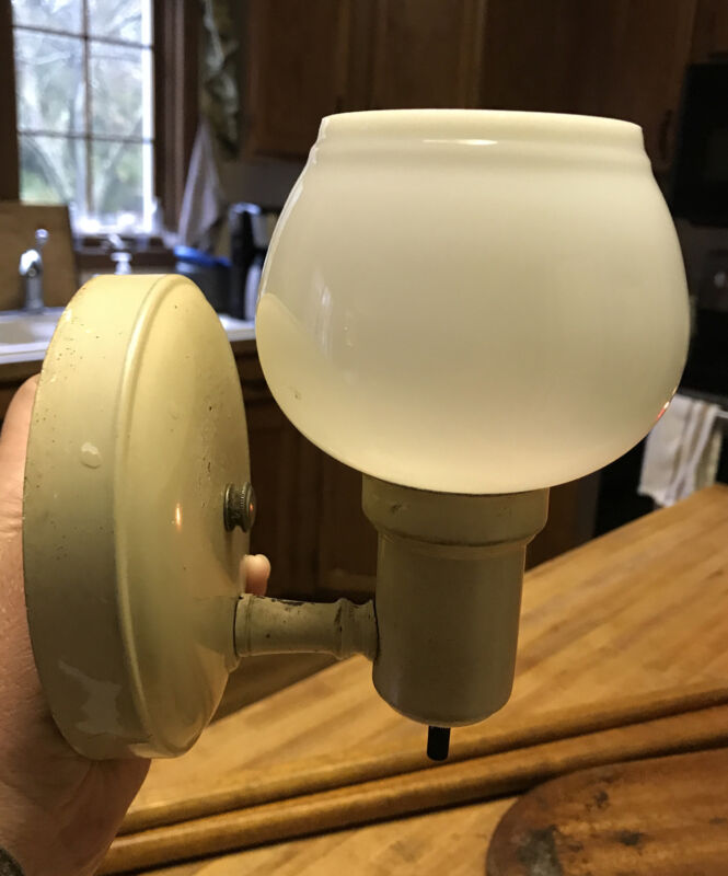 Title (ebay affiliate link): Authentic Vintage Mid Century LightMaster Sconce Round Milk Glass Globe Light