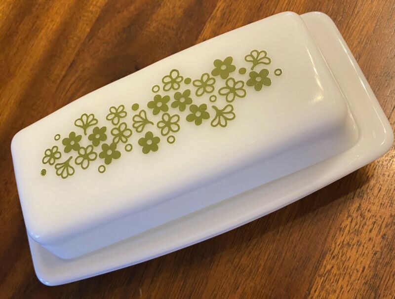 Vintage Pyrex Butter Dish With Lid Crazy Daisy Mint Must Have Condition