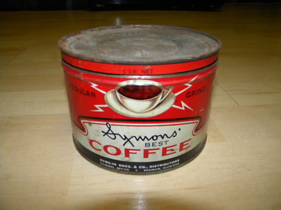 RARE VINTAGE SYMON'S BEST 1 LB COFFEE TIN WITH ORIG LID