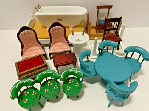 Title (ebay affiliate link): Vtg TLC tables chairs tub sink bed dollhouse furniture lot 19 pcs.