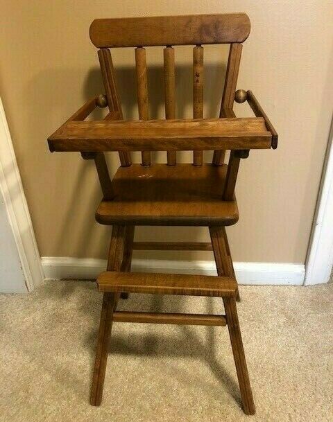 Title (ebay affiliate link): Vintage 1960''s Wooden Baby Doll High Chair Hinged Tray that lifts 26x12.5x12.5"