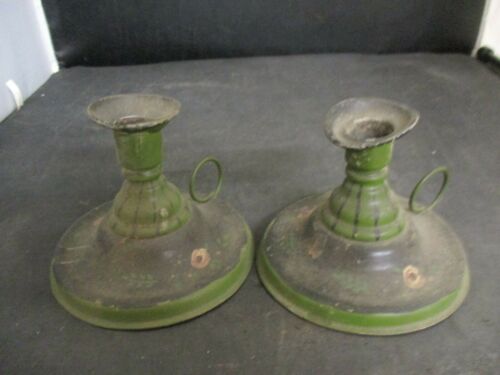 Title (ebay affiliate link): PAIR ANTIQUE VINTAGE PRIMITIVE TIN/METAL PAINTED CANDLESTICK HOLDERS