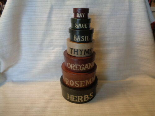 Title (ebay affiliate link): STACKING BOXES Folk Art Country Primitive - HERBS