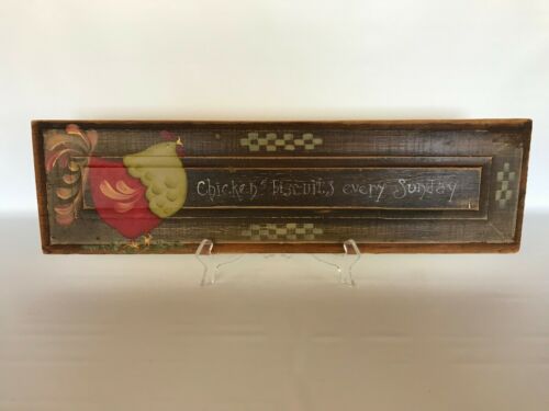 Title (ebay affiliate link): Country Primitive Handmade & Painted Wood Rooster Sign