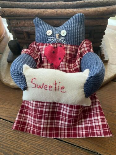 Title (ebay affiliate link): Primitive Kitty Cat Doll Valentine Girl Georgia Red Plaid Dress Sweetie